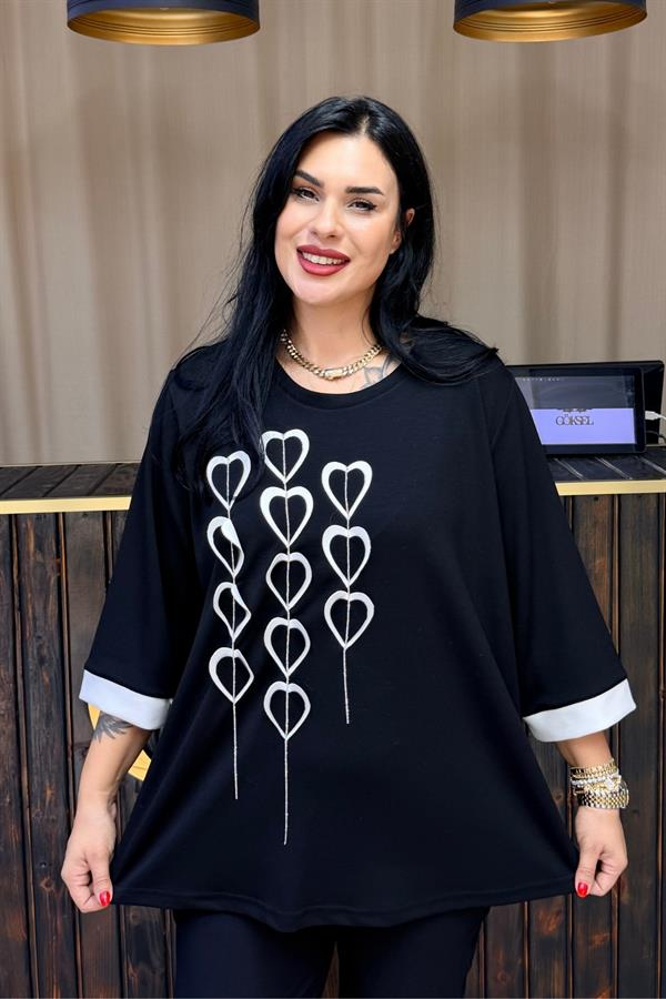 3 BOYUTLU KALPLİ BLUZ BEYAZ BÜYÜK BEDEN
