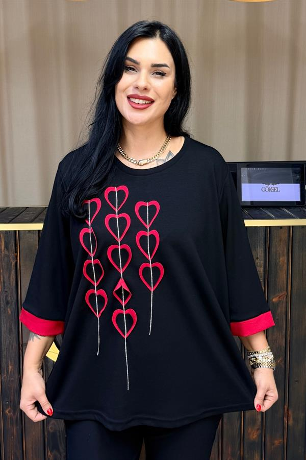 3 BOYUTLU KALPLİ BLUZ KIRMIZI BÜYÜK BEDEN
