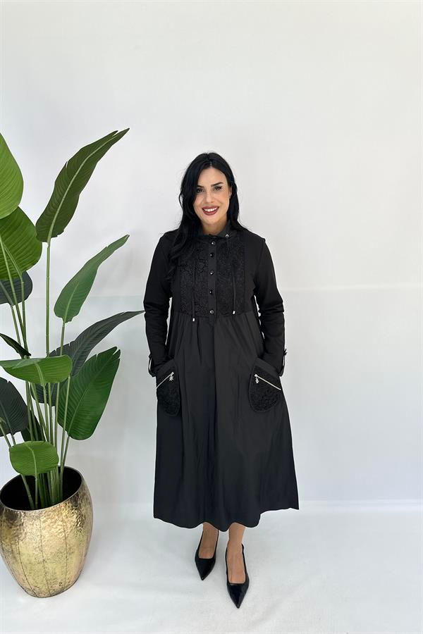Ajur Detaylı Büyük Beden Elbise - Siyah