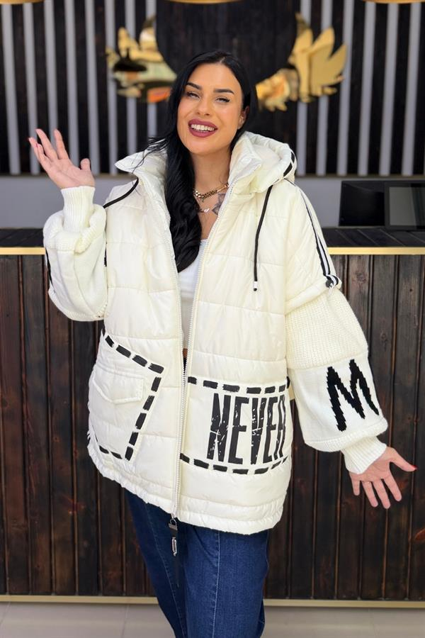 İÇİ KÜRKLÜ TRİKO KOLLU BÜYÜK BEDEN MONT