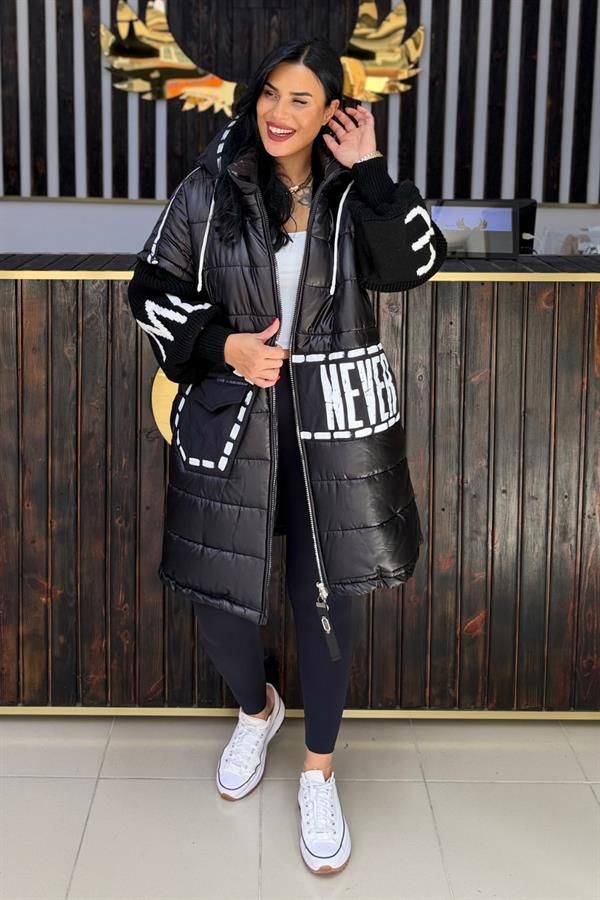 İÇİ KÜRKLÜ TRİKO KOLLU BÜYÜK BEDEN UZUN MONT SİYAH