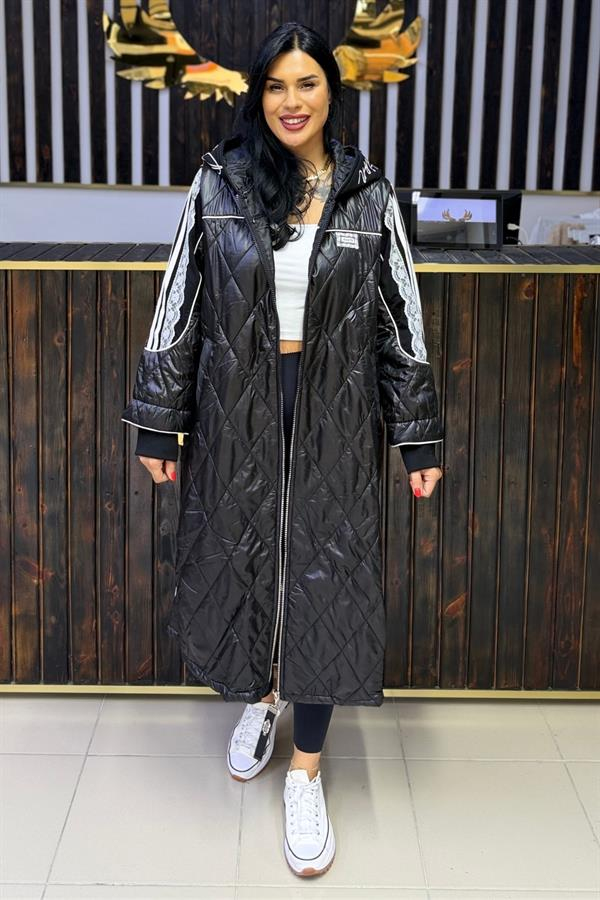 KAPİTONE VE DANTEL DETAYLI BÜYÜK BEDEN KABAN