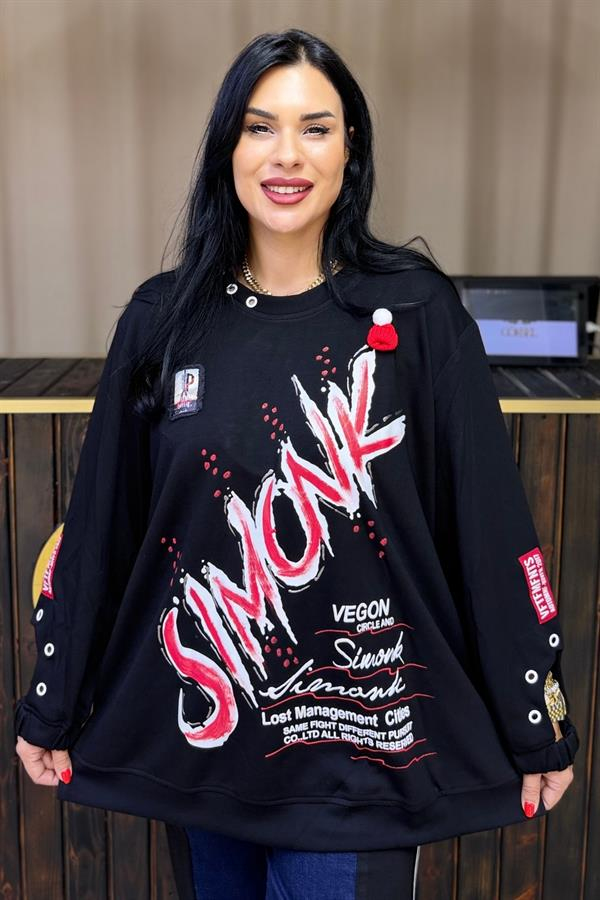KOL DETAYLI SIMONK BLUZ BÜYÜK BEDEN SİYAH
