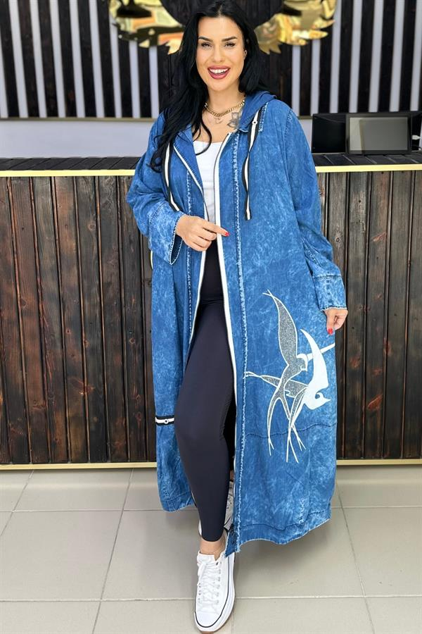 KUŞ BASKILI TAŞLI İNCE JEAN BÜYÜK BEDEN