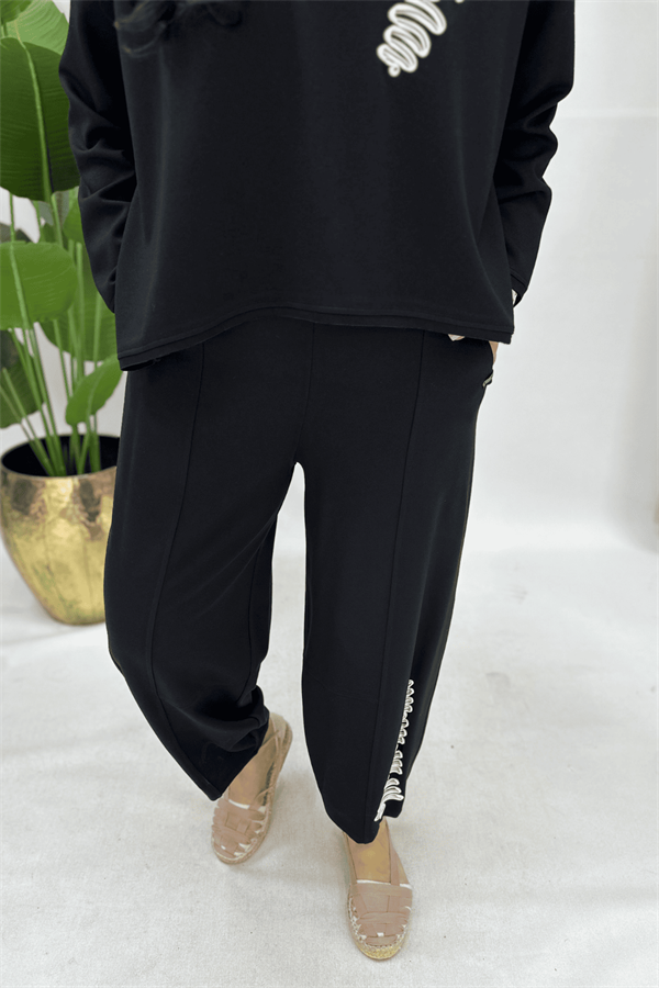 NAKIŞLI BÜYÜK BEDEN PANTOLON-SİYAH