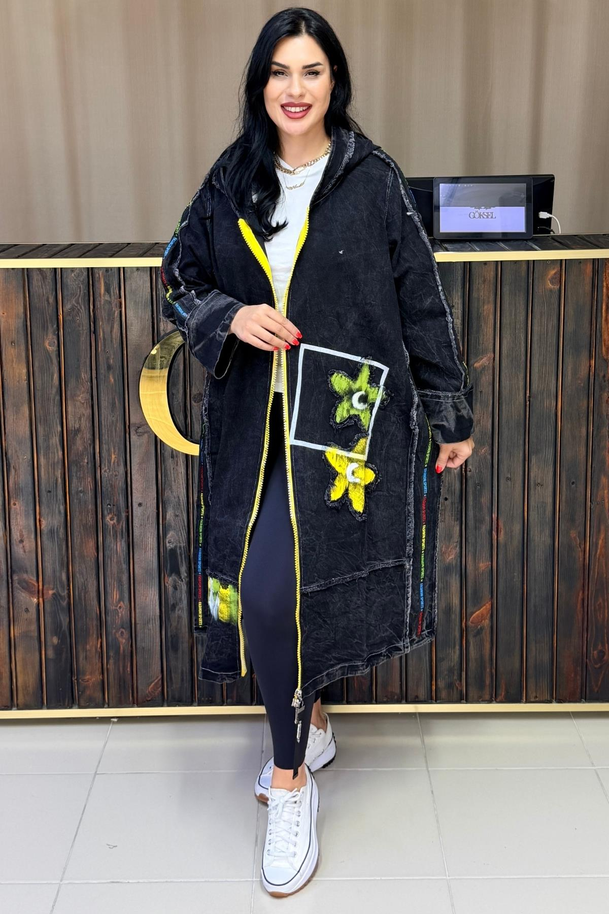 NEON RENKLİ ÇİÇEK VE YAZI DETAYLI JEAN BÜYÜK BEDEN