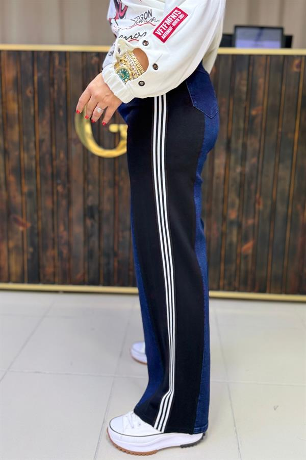 TOPARLAYICILI ŞERİTLİ LİKRALI BÜYÜK BEDEN JEAN PANTOLON