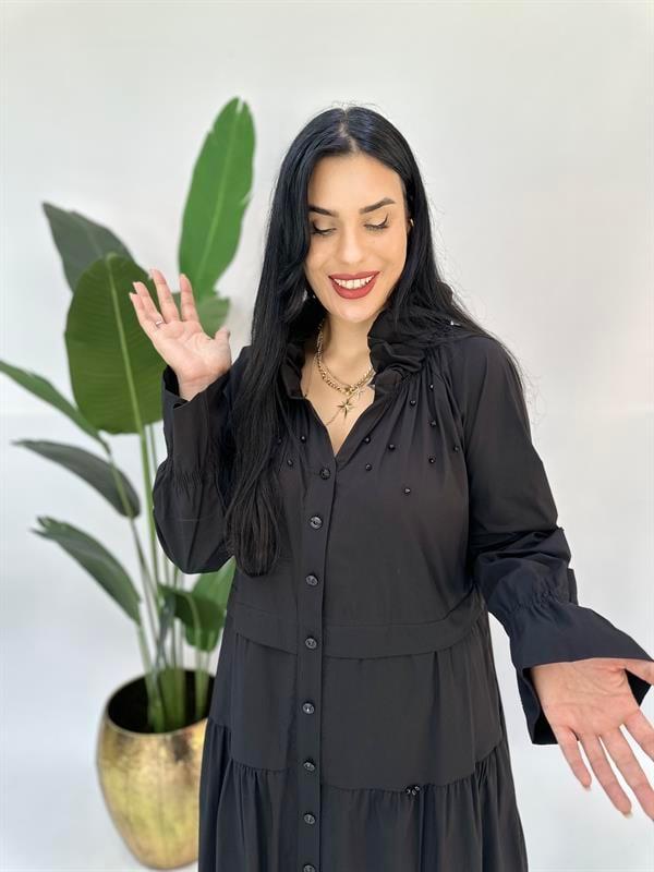 Büyük Beden yaka detaylı tasarım elbise siyah